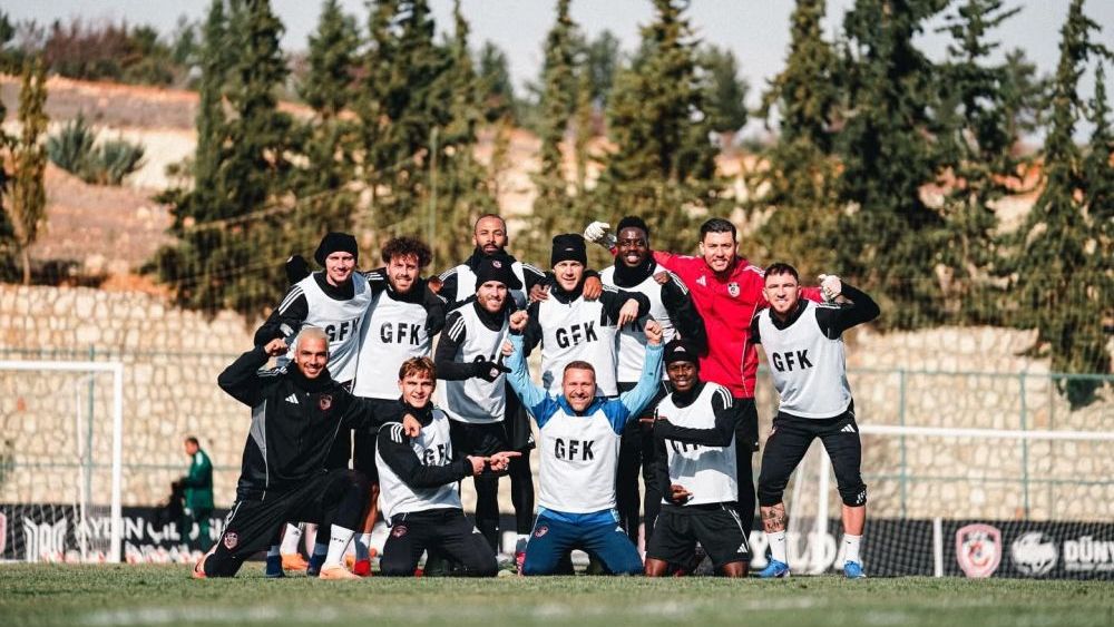 Ligin ikinci yarısına Galatasaray beraberliği ile başlayan Gaziantep Futbol Kulübü'nde Konyaspor maçının hazırlıkları devam ederken yapılan çift kale maçı kazanan beyaz takım büyük bir sevinç yaşarken bu sevinçlerini geleneksel galibiyet pozuyla noktaladılar.