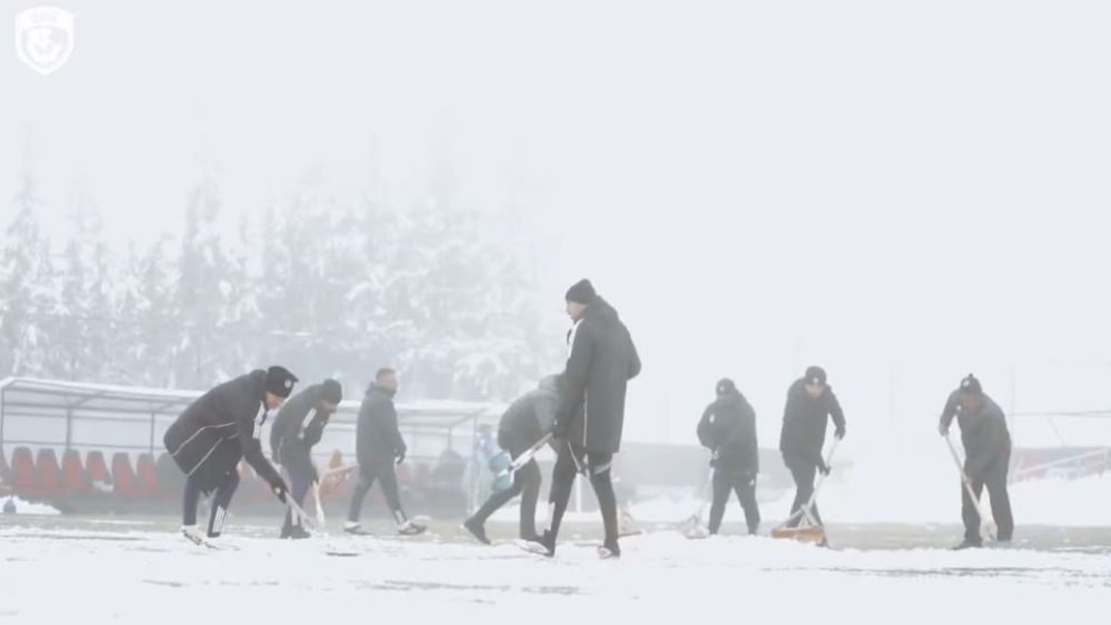 Gaziantep’te iki günden bu yana etkisi altına alan ve her yeri bembeyaz örtüyle kaplayan kar yağışı Gaziantep futbol Kulübü’nde antrenmanlarını yapmasına engel olmadı. Kırmızı-siyahlı takım Konyaspor ile oynayacağı maçın hazırlıkları için önce sahadaki karı temizlediler ardından da antrenman yaptılar. Teknik direktör Burak Yılmaz ve futbolcular ellerine aldıkları kar temizleme kürekleri ile birlikte sahadaki karı kenara atarak antrenmanlarına devam ettiler.